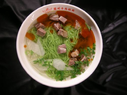 而菠菜面在蘭州廣受歡迎,從小巷中的不知名小店到大的餐廳,隨處可見其蹤影。然而吃菠菜面的最好去處卻莫過于蘭新市場(chǎng)瑞德摩爾波羅地海一樓的金味德菠菜面,分量足,價(jià)錢便宜,就餐環(huán)境也好!耙郧盁o數(shù)次從其門前經(jīng)過而沒有勇氣進(jìn)入,因?yàn)榭粗b修很高檔的樣子,理所當(dāng)然以為很貴。結(jié)果朋友說才6快一碗,那不來嘗嘗還等什么”正在吃面的陳師傅說:“這才是地道的平民食品啊,完全是以前家鄉(xiāng)菠菜面的味道!笨吹疥悗煾的樕蠞M足的神情,我也忍不住點(diǎn)了一份雞湯香菇菠菜面,上餐的速度倒是很快,單是這面的色澤就已經(jīng)讓我垂涎欲滴,品著菠菜的那陣陣清香,頓時(shí)覺得夏日的炎熱漸漸退去,一股清涼悠然而來。