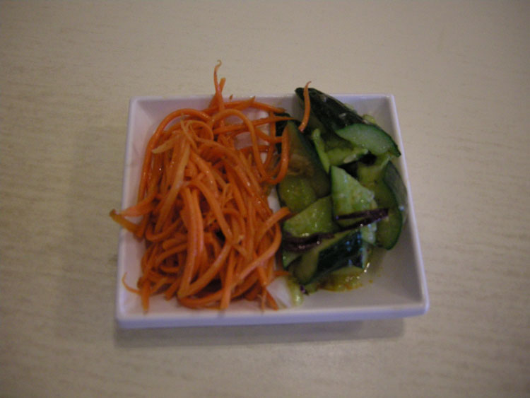 基本材料 胡蘿卜500克,香菜50克,蒜苗10克,精鹽、味精、醋、白糖、香油各適量。