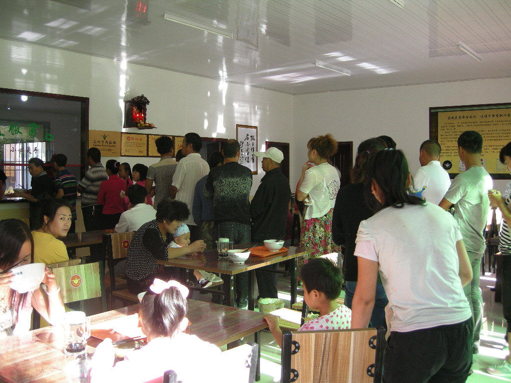 食客們拿著小票自覺的排起長隊(duì),都排到門外了,只為等待著那一碗噴香誘人的蘭州牛肉拉面。