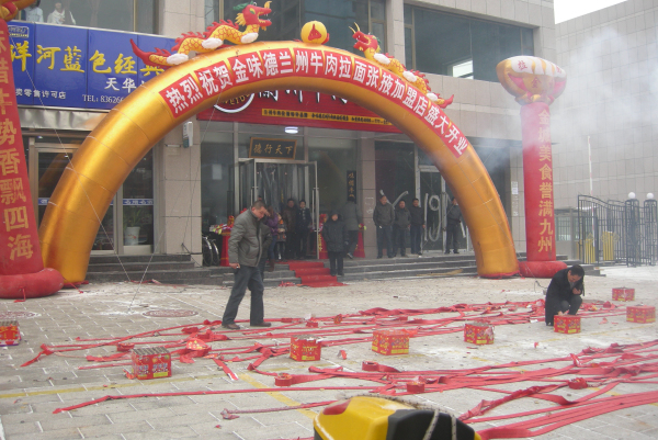 2012年12月2日金味德蘭州牛肉拉面張掖加盟店隆重開業(yè),鞭炮齊鳴,鑼鼓喧天,現(xiàn)場(chǎng)人潮涌動(dòng),氣氛十分火爆。金味德蘭州牛肉拉面也迎來了第50家加盟店的開業(yè),踏上一個(gè)新的事業(yè)起點(diǎn),預(yù)示著金味德蘭州牛肉拉面加盟連鎖事業(yè)向嶄新的舞臺(tái)拉開了序幕。