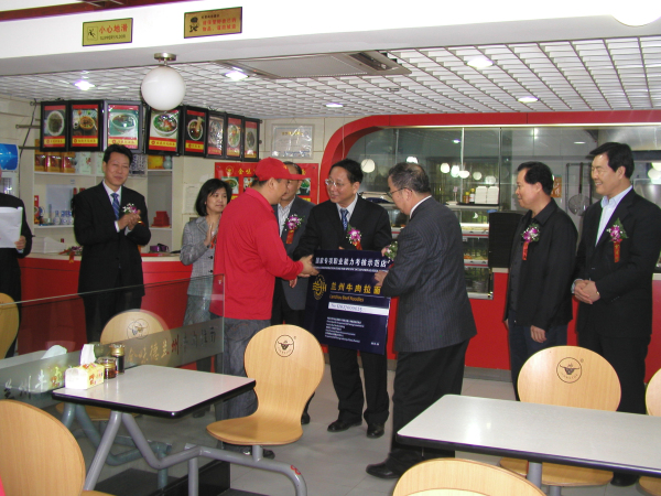 在儀式現(xiàn)場,甘肅省人社廳副廳長、蘭州牛肉拉面專項(xiàng)職業(yè)能力考核鑒定委員會(huì)副主任楊俊斌與福建省人社廳副廳長陳翔一起,為廈門市“金味德”蘭州牛肉拉面店授牌。據(jù)介紹,“蘭州牛肉拉面———國家專項(xiàng)職業(yè)能力考核示范店”考核評定工作,是由中國蘭州牛肉拉面制作專項(xiàng)職業(yè)能力考核鑒定委員會(huì)、甘肅省人力資源行業(yè)協(xié)會(huì)以及甘肅省職業(yè)技能鑒定指導(dǎo)中心,組織考評專家對從業(yè)人員進(jìn)行專項(xiàng)職業(yè)能力考核鑒定的同時(shí),在全國開展的評定活動(dòng)。