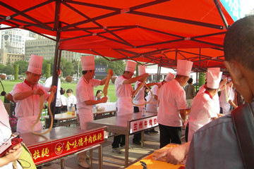 活動(dòng)現(xiàn)場(chǎng),公司下屬的分公司“蘭州牛肉面專業(yè)技術(shù)培訓(xùn)中心”的學(xué)員,向廣大市民群眾展示了拉面的系列技術(shù),包括溜條、拔劑子、拉面,其中拉面方面,表演了二細(xì)、三細(xì)、大寬、韭葉、蕎麥棱等,另外,學(xué)員還表演了公司主營(yíng)產(chǎn)品蔬菜營(yíng)養(yǎng)面,吸引了眾多觀眾圍觀、咨詢,場(chǎng)面火熱。同時(shí),公司的蘭州牛肉拉面加盟連鎖,也備受關(guān)注,咨詢的人接連不斷。