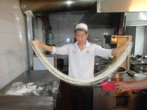 伏經(jīng)理考核加盟店員工拉面技術(shù)