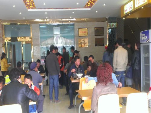 金味德蘭州牛肉拉面禮縣加盟店位于甘肅省隴南市禮縣城關(guān)鎮(zhèn)城沿,經(jīng)營面積400平方米,一層經(jīng)營金味德蘭州牛肉拉面,二層經(jīng)營金味羊肉泡鏌,憑借正宗的金味德蘭州牛肉拉面及金味德特色營養(yǎng)蔬菜面、金味羊肉泡饃等多種面品,吸引了大批的消費(fèi)者光顧,店內(nèi)外等待吃面的顧客排成了長龍。
