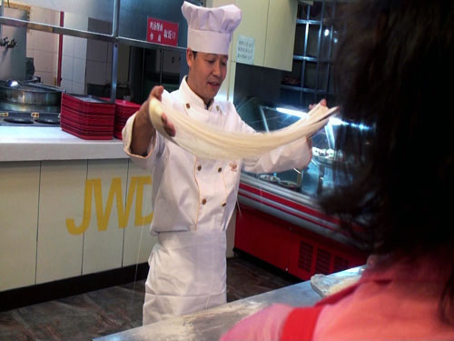 2010年5月28日,日本NTV電視臺《世界真奇妙》欄目組在蘭州金味德總店進(jìn)行拍攝,特邀梁順儉總經(jīng)理為他們演示蘭州拉面的拉制。當(dāng)梁順儉總經(jīng)理成功地將一團(tuán)面拉出4096根,長度達(dá)到14公里時,圍觀的食客不由得吶喊叫好!