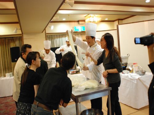 梁順儉先生精湛的拉面技術(shù)博得日本秋田市民的陣陣驚嘆