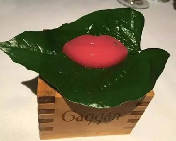 嘴唇emoji是一盤(pán)嘴唇形狀的菜,一顆用柚子和荔枝做的嘴唇形果凍,躺在一張檳榔葉上,菜名叫“吻我”。