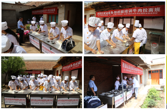 為進(jìn)一步提升西固區(qū)河口古鎮(zhèn)旅游景區(qū)“農(nóng)家樂”廚藝技能,打造“美麗古鎮(zhèn)”“古鎮(zhèn)人家”,讓古鎮(zhèn)餐飲更貼近旅游市場需求,6月19日上午,西固區(qū)就業(yè)服務(wù)局和甘肅興隴蘭州牛肉拉面職業(yè)培訓(xùn)學(xué)校聯(lián)合為河口古鎮(zhèn)經(jīng)營戶和富余勞動力打造的牛肉拉面技能培訓(xùn)班如期開班了。