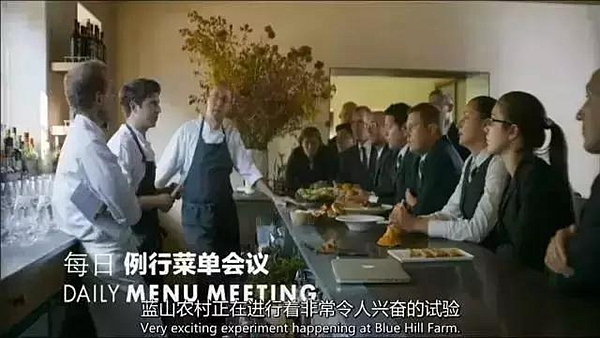 廚師在這個(gè)餐廳的工作,跟去其他米其林三星餐廳有很大不同。他們沒有菜單,每天早上要去農(nóng)田里,看胡蘿卜是不是可以采摘了。食材采摘完,丹·巴伯爾就跟年輕廚師討論今天可以做什么菜,每天早上決定晚上做什么。