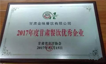 甘肅省烹飪協(xié)會2017年度年會暨五屆四次理事會上,甘肅金味餐飲有限公司以良好的企業(yè)信譽(yù)榮獲“2017年度甘肅餐飲優(yōu)秀企業(yè)。