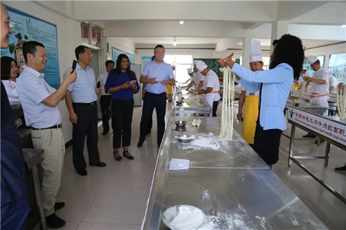 代表團(tuán)到興隴蘭州牛肉拉面職業(yè)培訓(xùn)學(xué)校,興隴國際商學(xué)院進(jìn)行實地考察。
