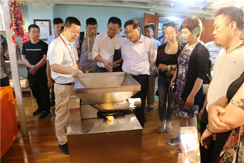 嘉賓在金味德產(chǎn)業(yè)集團(tuán)產(chǎn)業(yè)鏈之一的牛大師電子商務(wù)有限公司考察交流,了解了由興隴蘭州牛肉拉面廚房設(shè)備有限公司專利發(fā)明的揉面出擠一體機(jī),同時(shí)肯定了它給牛肉面行業(yè)帶來(lái)的便利。