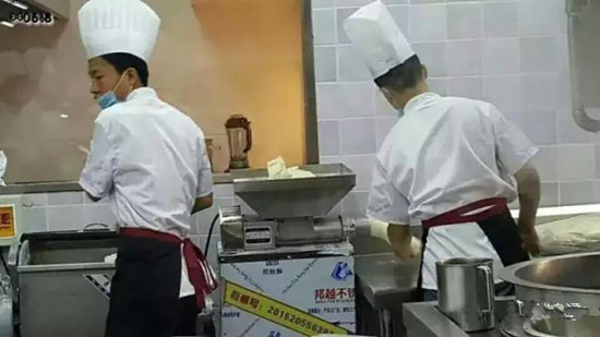 拉面培訓(xùn)學(xué)校教授學(xué)員使用揉面出劑一體機(jī)