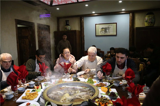 顧客在中國(guó)蘭州牛肉拉面體驗(yàn)工坊體驗(yàn)“熱鍋?zhàn)用妗?/span>