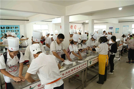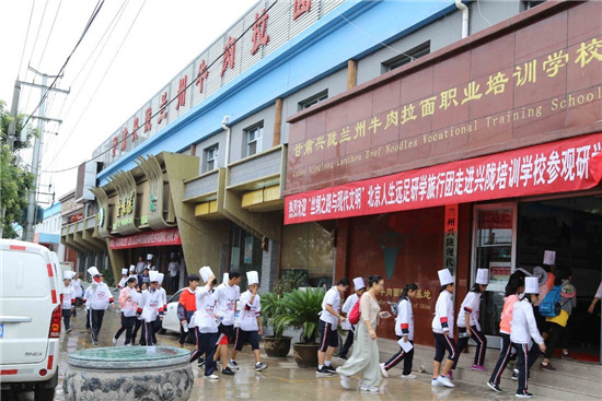 研學(xué)旅行團(tuán)參觀中國蘭州牛肉面體驗(yàn)工坊文化