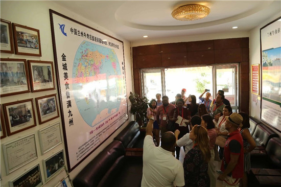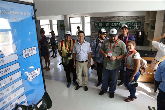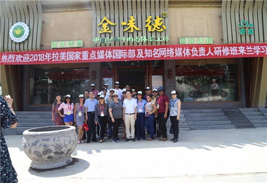 7月31日,“2018年拉美國(guó)家重點(diǎn)媒體國(guó)際部及知名網(wǎng)絡(luò)媒體負(fù)責(zé)人研修班”學(xué)員在甘肅省委宣傳部,蘭州市委宣傳部外宣辦及蘭州牛肉拉面行業(yè)協(xié)會(huì)領(lǐng)導(dǎo)的陪同下分別來(lái)到了中國(guó)蘭州牛肉拉面體驗(yàn)工坊、蘭州牛肉拉面創(chuàng)業(yè)孵化園、興隴蘭州牛肉拉面國(guó)際商學(xué)院、甘肅興隴蘭州牛肉拉面職業(yè)培訓(xùn)學(xué)校參觀采訪。