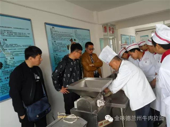 拉面培訓(xùn)學(xué)校教授學(xué)員使用揉面出劑一體機(jī)