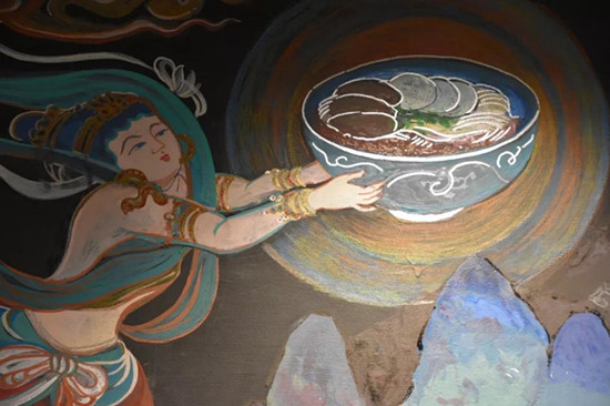 店內(nèi)八米長(zhǎng)手繪敦煌壁畫