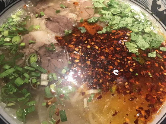 蘭州牛肉面有著一清二白三紅四綠五黃的五大特征,即湯清、蘿卜片白、辣椒油紅、香菜和蒜苗綠,以及面條黃亮。牛肉面的形狀可分為圓形、扁形、棱形三大類,當(dāng)中最受歡迎的當(dāng)屬細(xì)、二細(xì)、三細(xì)及韭葉。