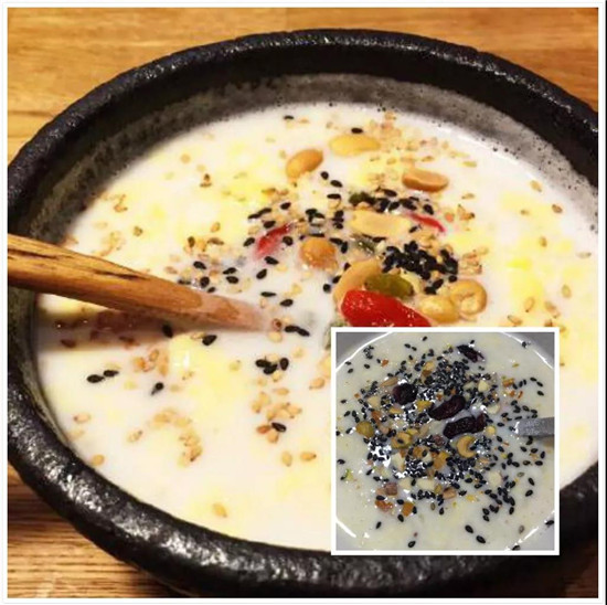 制作原料主要有牛奶、雞蛋、醪糟等。吃起來蛋花柔軟, 滑嫩爽口,香甜略酸,真是色香味俱全。是金城蘭州比較流行的美食,最先食用牛奶雞蛋醪糟的是甘肅臨夏人,后傳入蘭州。