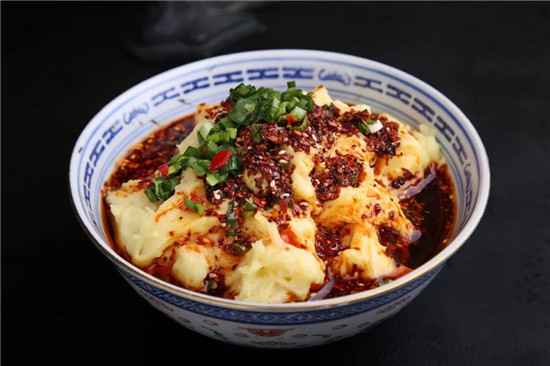 洋芋攪團(tuán)舟曲俗諺:“要得吃好飯,洋芋砸攪團(tuán)”。砸洋芋攪團(tuán),先用光滑碩大的洋芋煮熟剝皮,盛在專用木槽中,用木榔頭輕輕揉搓,待洋芋成團(tuán)則用力夯砸,直至洋芋團(tuán)變成一整塊。洋芋攪團(tuán)多配酸菜,苦根兒咸菜。酸菜用油加蔥、辣子面兒和調(diào)料炒成,加水煮沸成為帶漿水的菜湯?喔滩饲屑(xì)加辣面用熱熟油澆好。先在碗中盛小半碗帶湯的酸菜。再將洋芋團(tuán)夾成小塊放入碗內(nèi)食用,攪團(tuán)柔軟細(xì)膩,菜湯酸辣可口。食之,余味無窮。