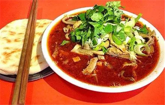 羊雜碎是甘肅永昌城鎮(zhèn)居民最愛吃的早點,用大碗泡上蒸饃,抓一大把切碎的牛羊頭蹄腸肚,舀上肉湯,在肉湯鍋里,反復(fù)漂冒幾次,務(wù)使?jié)M碗烘燙,再端桌上請客人吃。