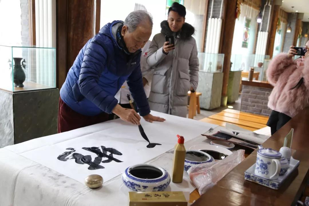 在活動現(xiàn)場,書畫家與公司員工歡聚一堂、共迎新春。各位書畫家飽蘸激情、揮毫潑墨,現(xiàn)場進行創(chuàng)作,畫筆濃墨重彩地描繪著自己的靈感,毛筆揮毫自如精心書寫著對生活的熱愛和感悟,一幅幅風(fēng)格迥異的書畫作品呈現(xiàn)在眾人面前,寬敞明亮的工坊里翰墨飄香,熱鬧非凡。