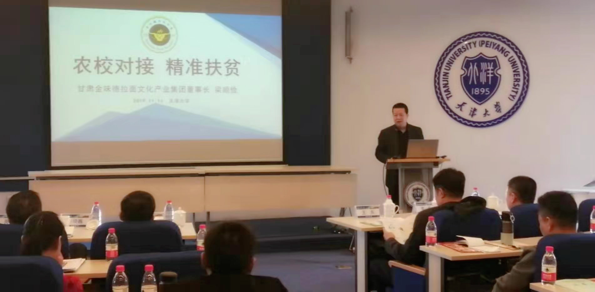 甘肅省教育廳高校后勤服務(wù)中心攜甘肅產(chǎn)業(yè)扶貧龍頭企業(yè)金味德拉面文化產(chǎn)業(yè)集團、甘肅農(nóng)投公司、農(nóng)校對接農(nóng)產(chǎn)業(yè)品供應(yīng)企業(yè),就蘭州牛肉拉面高校扶貧窗口設(shè)置與天津教委、天津大學(xué)、南開大學(xué)、甘肅天津商會等進行對接洽談。