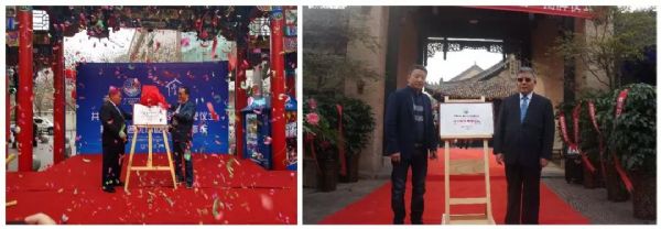 圖|云程主席分別與禮泉袁家村回民街董事長孫建平和蘭州市城關(guān)區(qū)商務(wù)局劉志強(qiáng)局長為“中華民族美食街區(qū)”揭牌