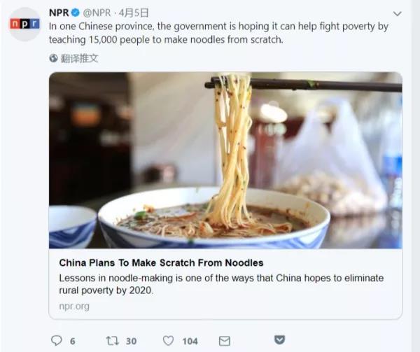 據(jù)美國(guó)全國(guó)公共廣播電臺(tái)網(wǎng)站(NPR)4月4日?qǐng)?bào)道,“授人以魚(yú)不如授人以漁”這句諺語(yǔ)在中國(guó)有了新的解讀:給一個(gè)人一碗面,你可以讓他吃飽一天;教一個(gè)人如何做面條,你可以讓他一輩子都吃飽。
