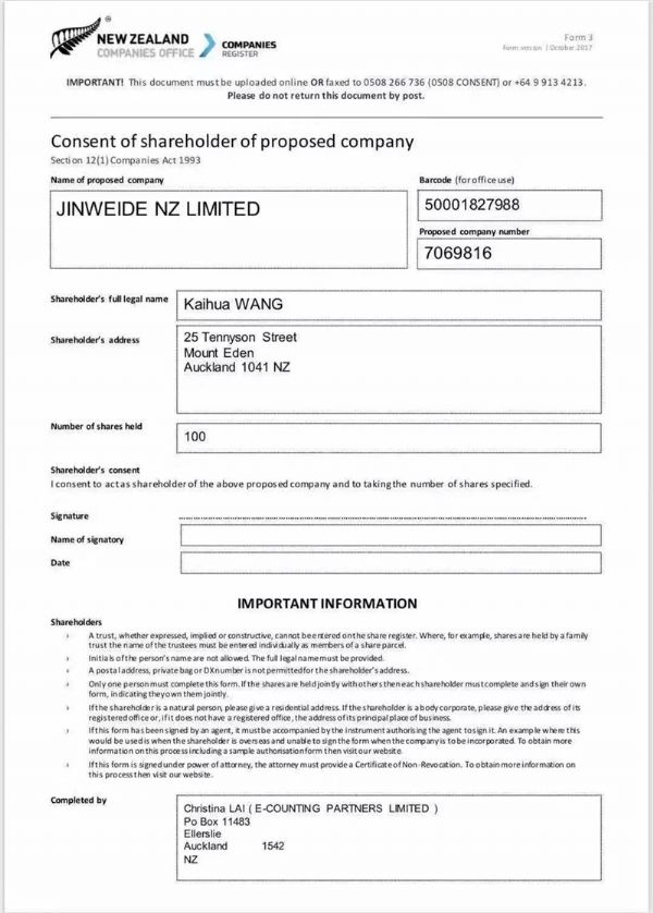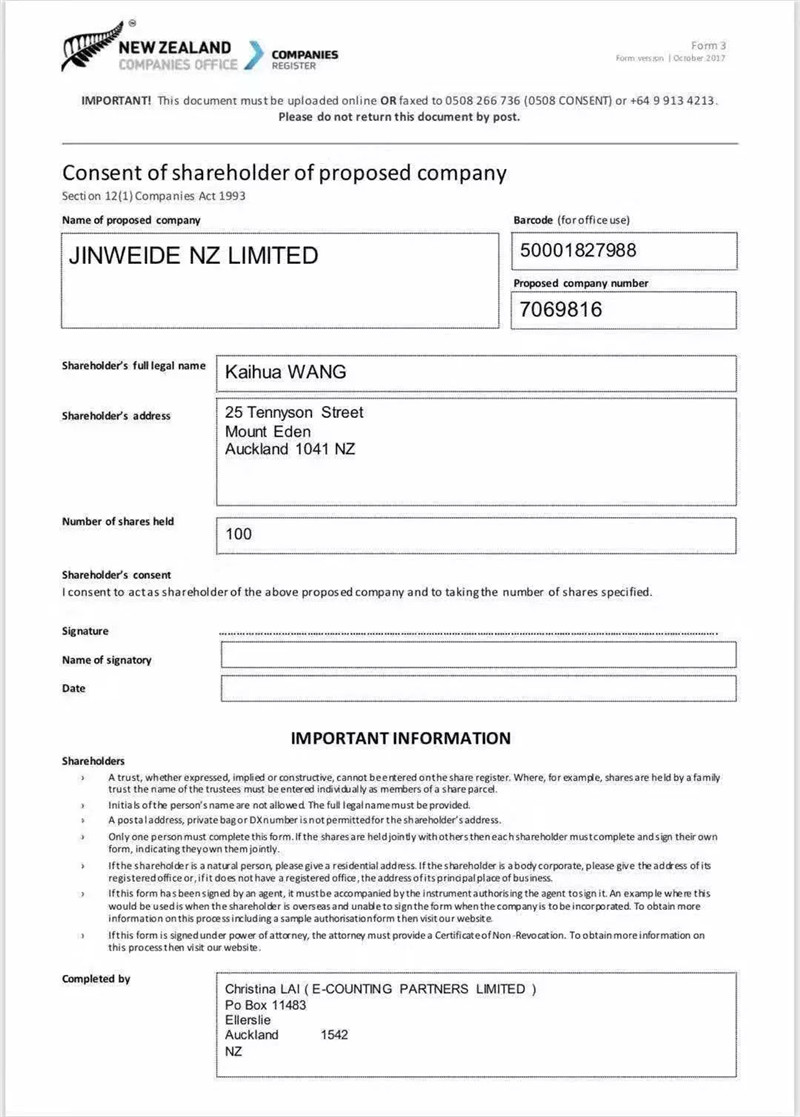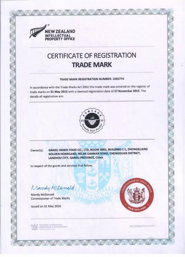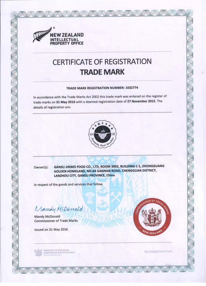 新西蘭營(yíng)業(yè)執(zhí)照及商標(biāo)注冊(cè)證書