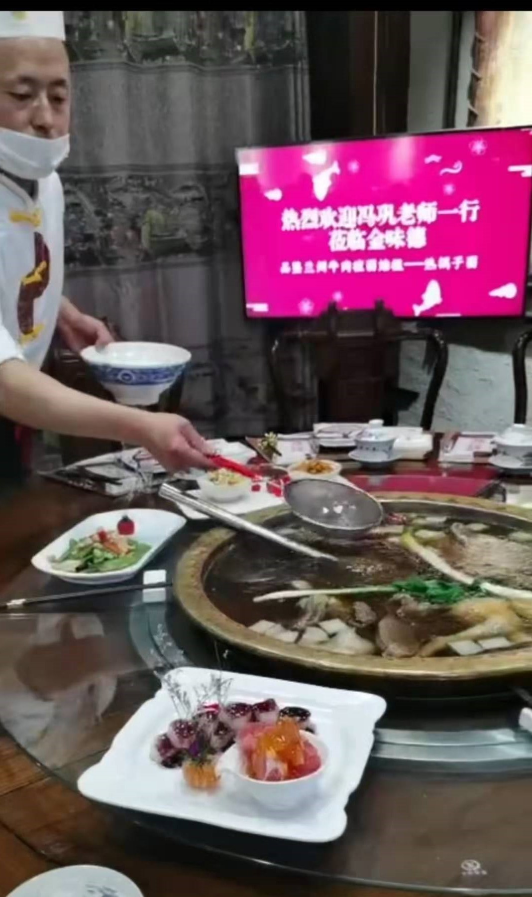 2020年11月28日中午,馮鞏老師、賈旭明老師等一行蒞臨蘭州牛肉拉面體驗工坊,在著名軍旅詞作家倪永盛、蘭州黃河生態(tài)旅游開發(fā)集團有限公司董事長張永才、甘肅省演出行業(yè)協(xié)會會長伏輝、蘭州牛肉拉面國際聯(lián)盟主席、甘肅金味德拉面文化產(chǎn)業(yè)集團董事長等領(lǐng)導陪同下,品鑒了被中國烹飪協(xié)會命名的中國西部名宴、敦煌國際文博會評選的一帶一路特色名宴,以蘭州牛肉拉面為龍頭的小吃宴------熱鍋子全牦牛宴。