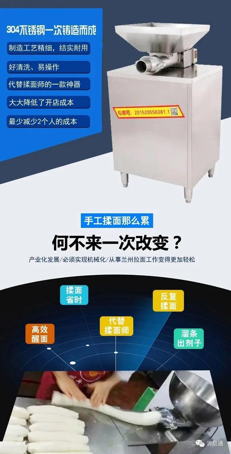 “興隴”揉面出劑一體機的問世,無疑是蘭州拉面史上一次全新的嘗試與改革,將極大推動蘭州牛肉面的發(fā)展。解放人手、提高效益,一臺機器能讓您省下2個人工,能讓拉面店老板省錢省力還省心。