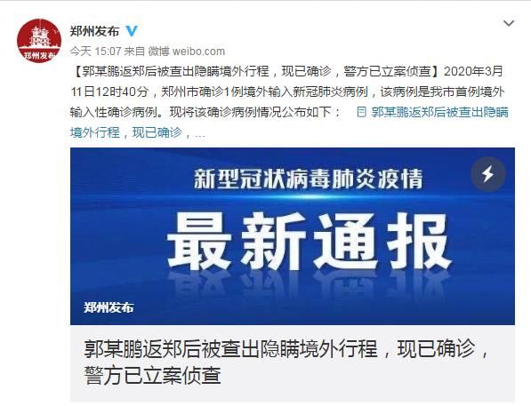 結(jié)果就在3月11日12時(shí)40分,郭某鵬確診,成為河南鄭州首例境外輸入性確診病例。