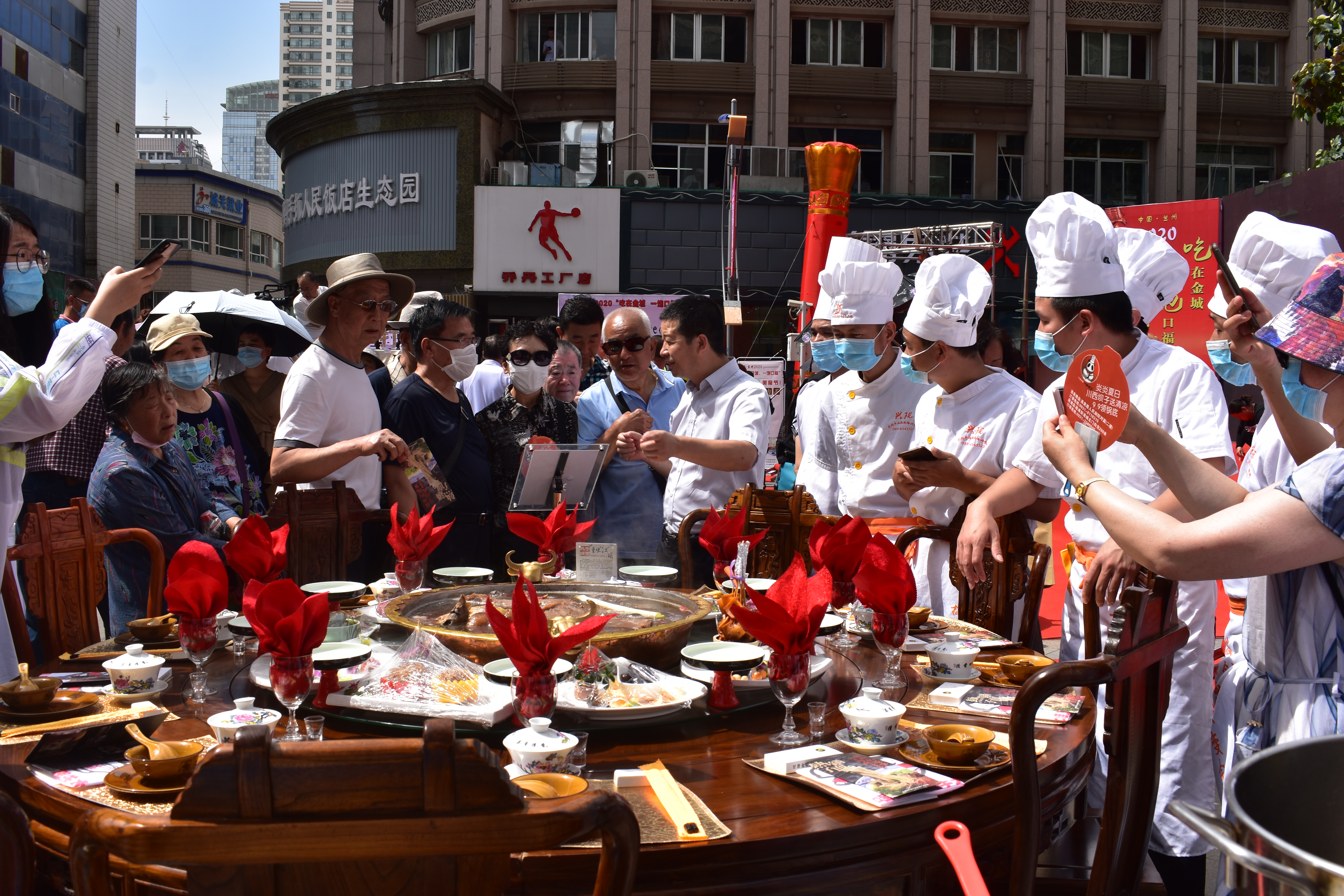 現(xiàn)場還展示了蘭州牛肉拉面始祖——"熱鍋子",熱氣騰騰、香味撲鼻,受到現(xiàn)場領(lǐng)導(dǎo)以及消費者高度好評;熱鍋子由中國烹飪大師、中國烹飪藝術(shù)家梁順儉首創(chuàng),在2018年中國烹飪協(xié)會(鄭州)面向世界發(fā)布的中國省籍名菜名宴中,獲得中國地域特色名宴、以蘭州牛肉拉面為龍頭的小吃宴——全(牦)牛宴。2019年中國敦煌國際文博會上獲得一帶一路特色名宴----牦牛宴。