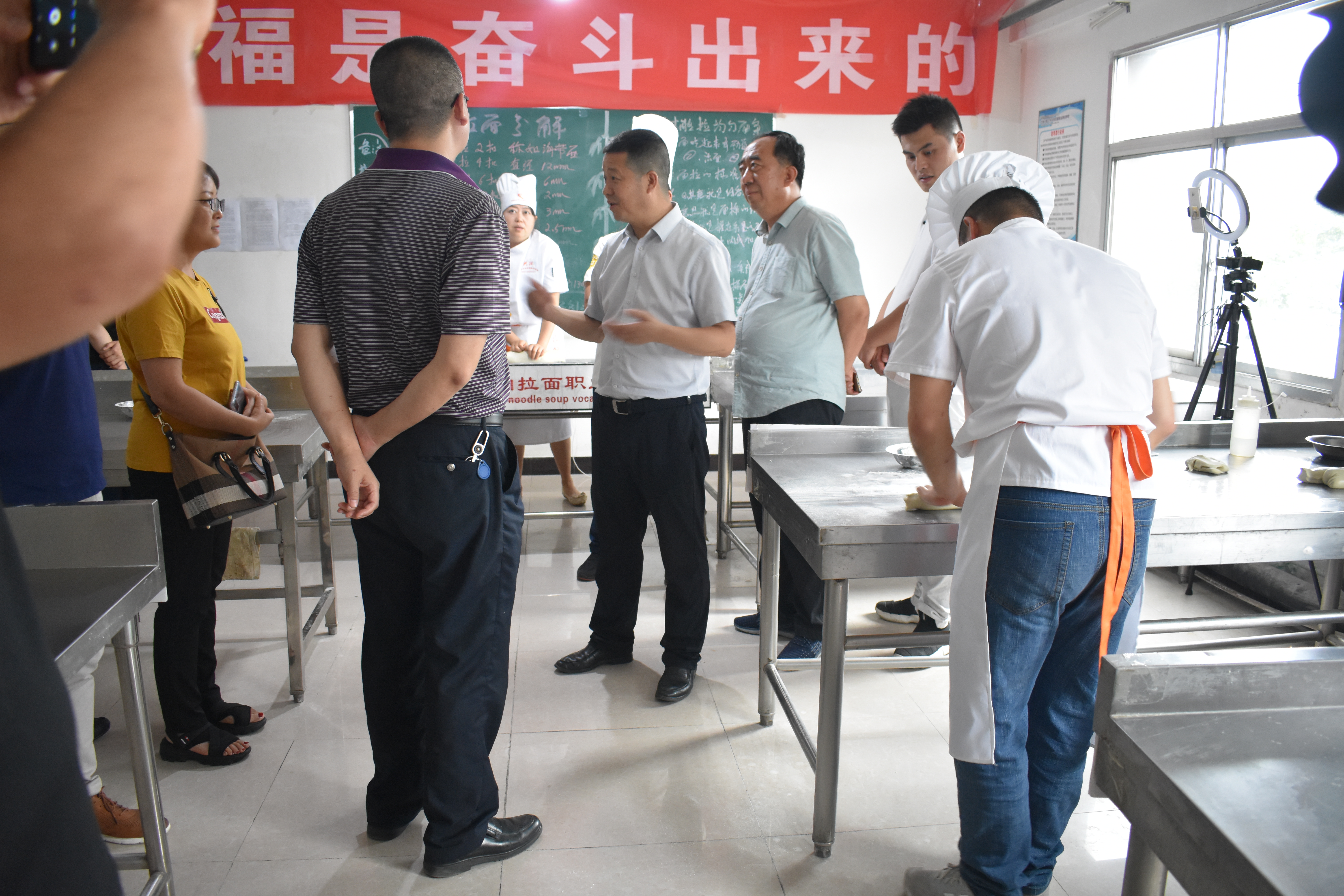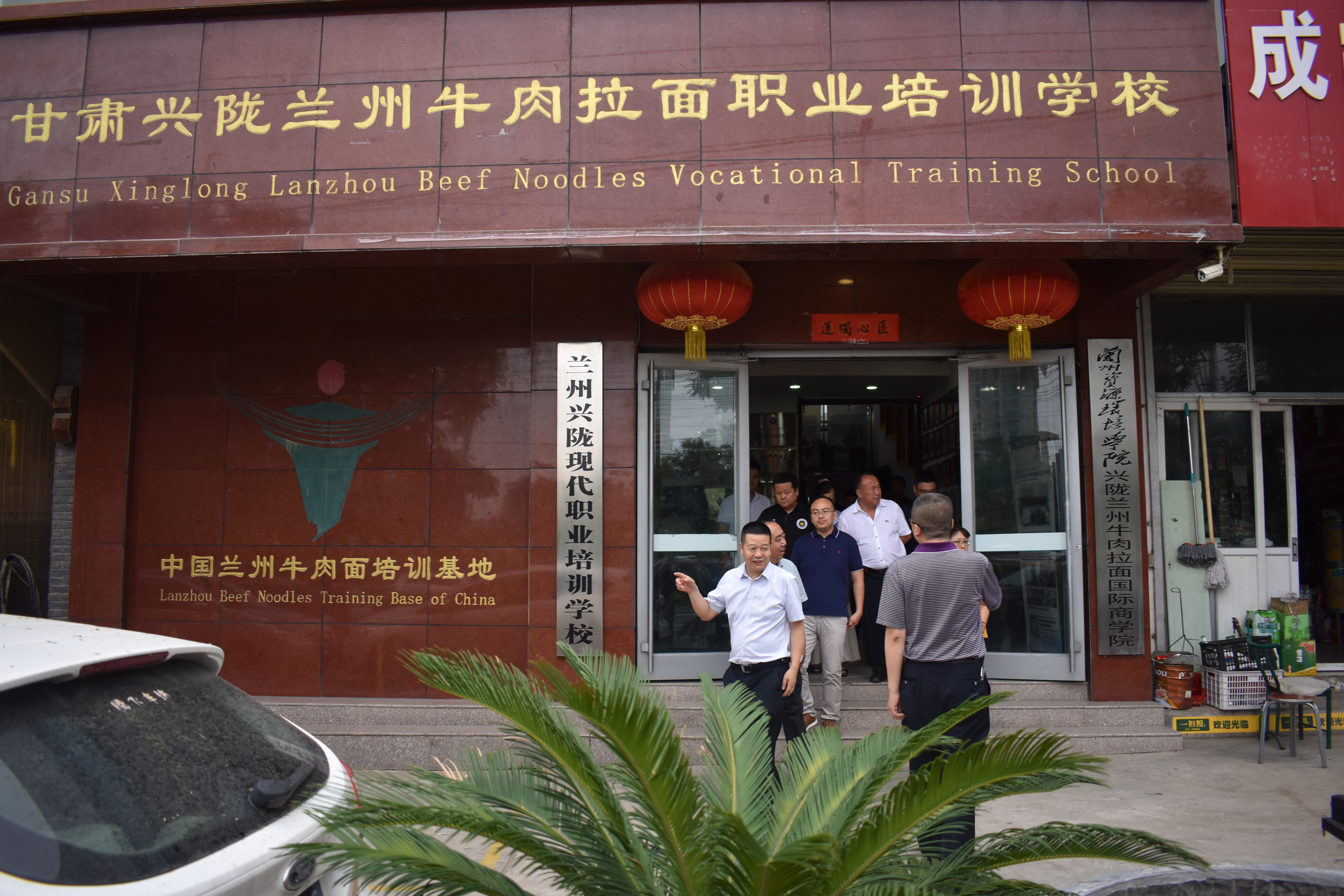 調(diào)研組對甘肅興隴蘭州牛肉拉面職業(yè)培訓(xùn)學(xué)校、興隴蘭州牛肉拉面國際商學(xué)院進(jìn)行考察。
