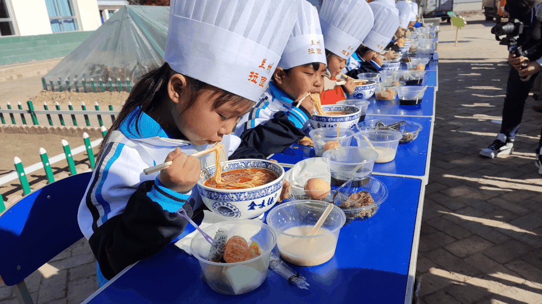 迎著凜冽的寒風(fēng),梁順儉蘭州牛肉拉面技能大師工作室聯(lián)合蘭州金味德牛肉拉面體驗(yàn)工坊來到永登縣張坪小學(xué),和同學(xué)們一起近距離感受感受非遺之美,孩子們?cè)谏钊肓私饬思亦l(xiāng)歷史文化、贊嘆傳統(tǒng)技藝的同時(shí),也為家鄉(xiāng)的非遺文化感到驕傲和自豪。