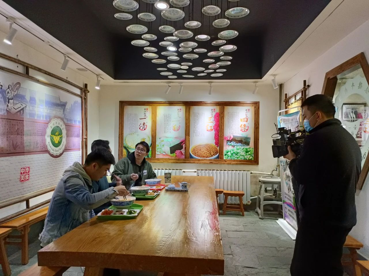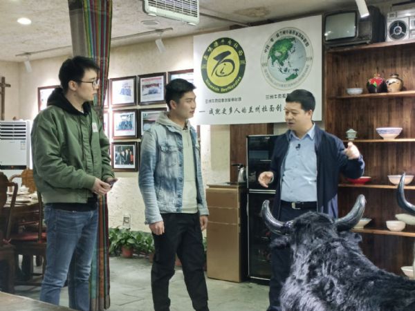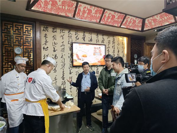 央視直播組來到中國蘭州牛肉拉面體驗工坊直播蘭州牛肉拉面文化。