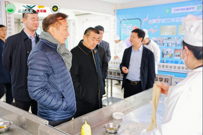 2023年12月12日,世界中餐業(yè)聯(lián)合會會長邢穎、副會長兼面食產(chǎn)業(yè)分會主席牛余新一行在蘭州調(diào)研考察蘭州拉面產(chǎn)業(yè)。