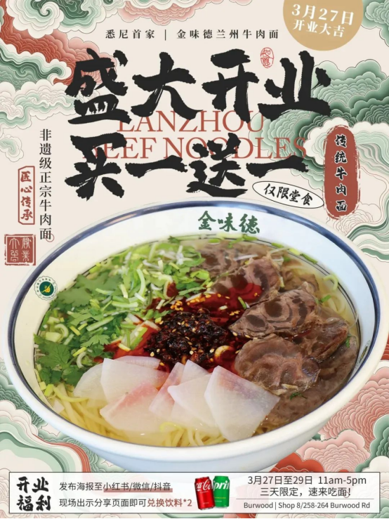2025年3月27日, 中國蘭州牛肉拉面龍頭企業(yè)、國際連鎖品牌“金味德牛肉拉面”在澳大利亞悉尼舉行盛大的開業(yè)典禮。新店位于悉尼繁華的Burwood中國城(Burwood Chinatown),悉尼金味德使用的蘭州牛肉拉面調(diào)味品都是通過哈拉認(rèn)證的清真調(diào)味品,從牛肉拉面家鄉(xiāng)—蘭州空運悉尼、將正宗蘭州牛肉拉面品鑒體驗融為一體,吸引了眾多悉尼蘭州牛肉面愛好者前來品鑒。