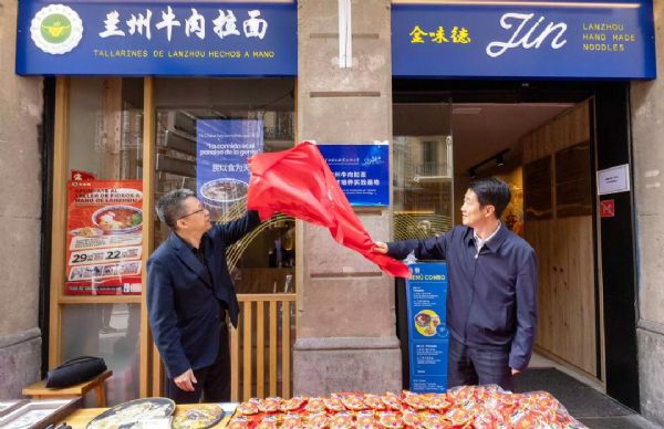 當?shù)貢r間2025年4月3日,“甘味出!ぬm州牛肉拉面——甘肅非遺文化主題活動日”在金味德蘭州牛肉拉面巴塞羅那總店(Carrer d'Aribau,39號)隆重開幕。