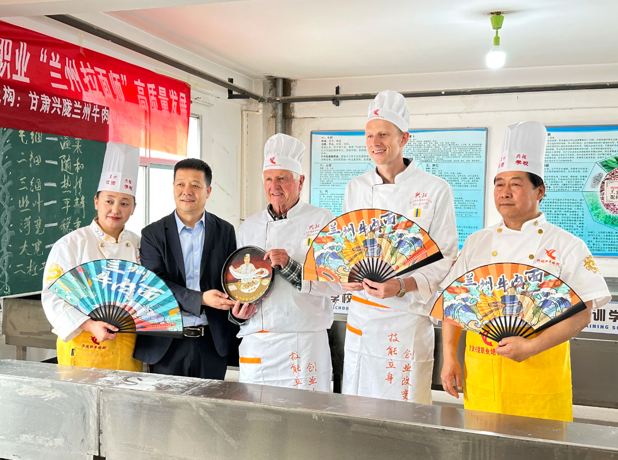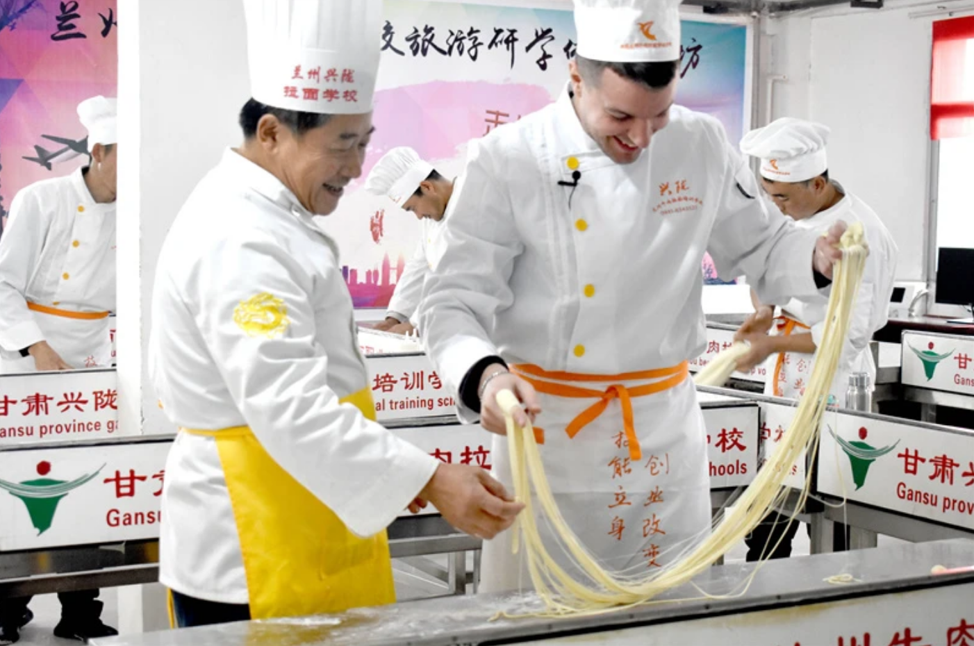 越來越多的外國友人來到蘭州學習蘭州牛肉拉面技術
